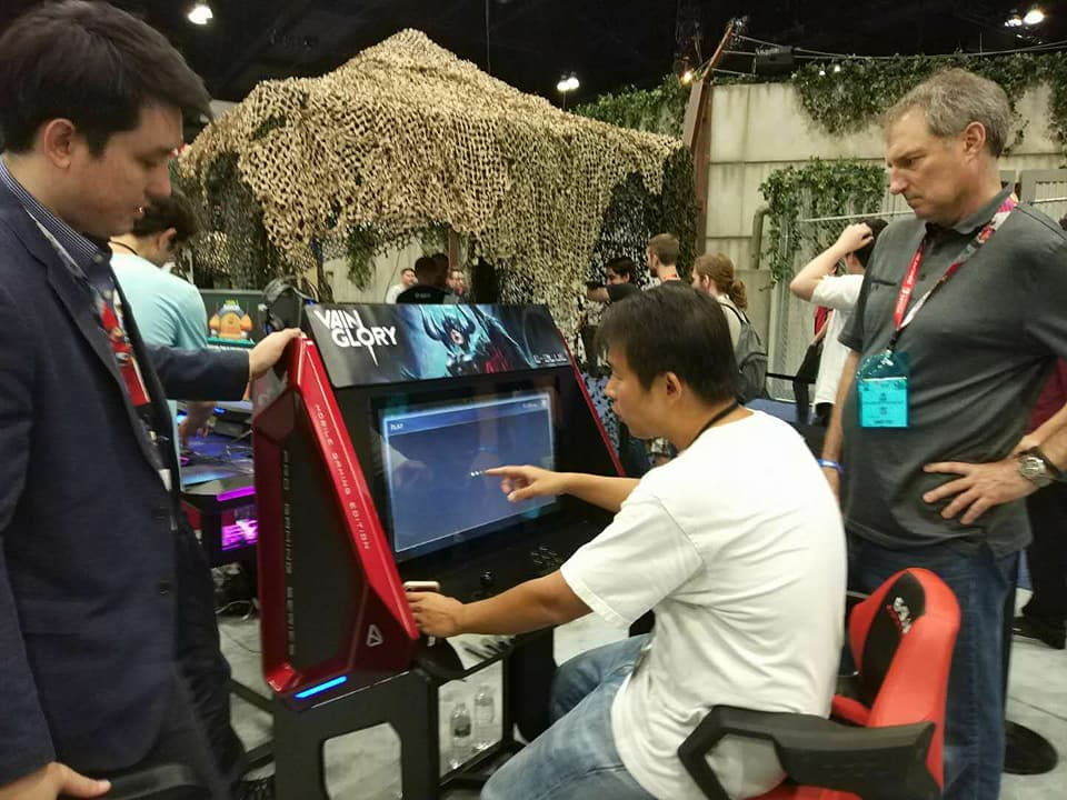 June 14, 2018. Cosplaying with G.I Joe@E3 Expo these days, just first to show up the world first mobile game arcade which integrated with Vain Glory....